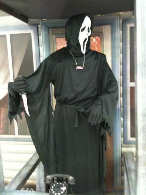 While I’m not a huge fan of the “Scream” movie franchise — I thought the first film was pretty good though — I have to say I’d be impressed if somebody put this life-size Ghostface figure on their porch.