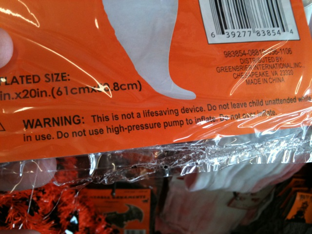 “Oh my gosh, I was about to give this blow-up plastic ghost to Timmy to use in the pool as a floatation device. Good thing I saw this warning.”
