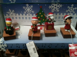Ah, “Peanuts.” You are synonymous with Christmas for many of us of a certain age. This set of Charlie Brown and friends figures can be purchased separately but, when gathered together, play holiday classics.