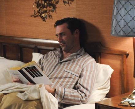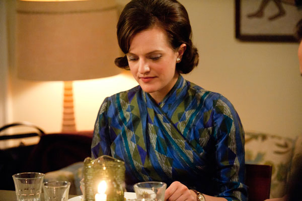 Joan (Christina Hendricks) gets the prize for best recovery of the episode. After observing that Peggy (Elizabeth Moss) isn’t wearing an engagement ring, Joan hears about Abe’s proposal and blurts out, “Shacking up?” before she recovers and convinces Peggy it’s really a romantic idea.