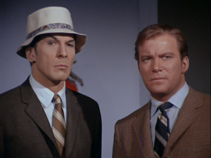 To investigate further, the two go down to 1968-era Earth, nattily dressed in sport coats and, for Spock, an ear-covering hat, and get mixed up in the goings-on. Lots of time-twisting hijinks ensue and we meet Roberta Lincoln (Teri Garr), the young woman working as secretary in the futuristic office from which Seven operates.