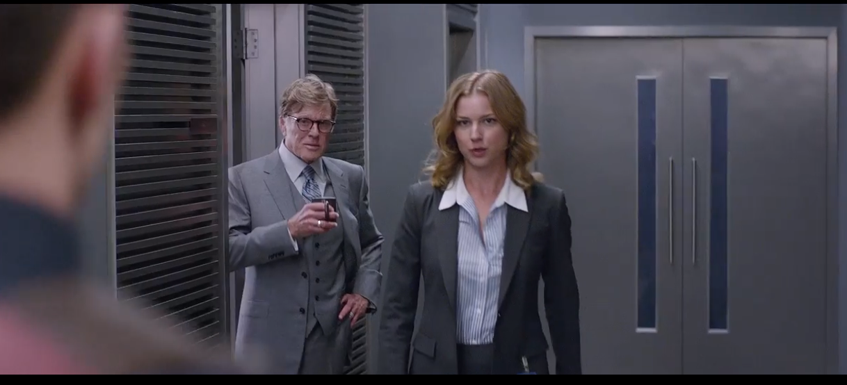 As Cap tries to tell the bad guys from the good guys – aside from his helpful suggestion to Sam that the bad guys will be the ones shooting at them – we’re introduced to Alexander Pierce (Robert freakin’ Redford), a Cabinet-level official who oversees SHIELD.