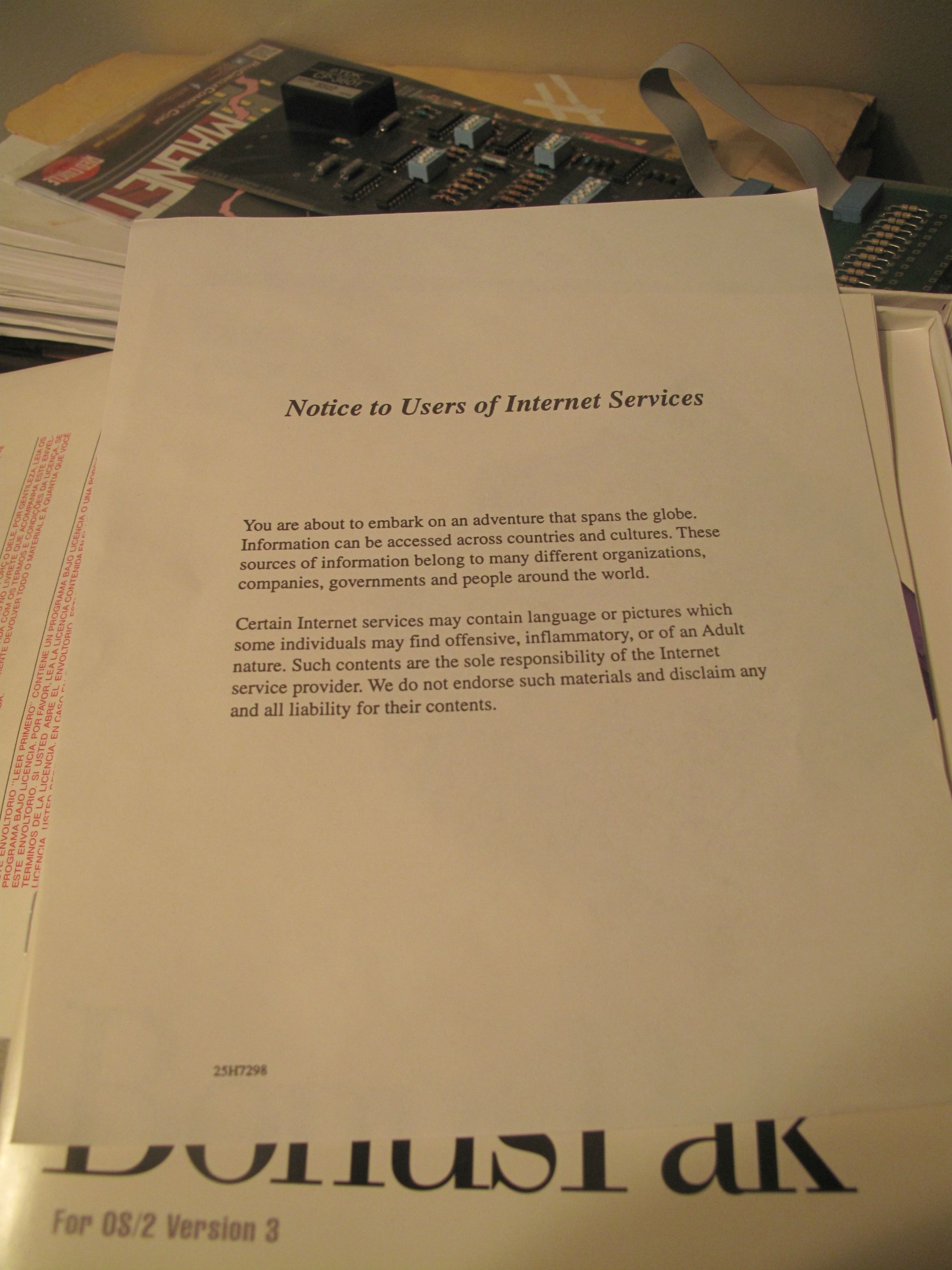 It’s supposedly some kind of disclaimer/warning/head’s up/whatever issued in 1994 by IBM for people about to get online for the first time.