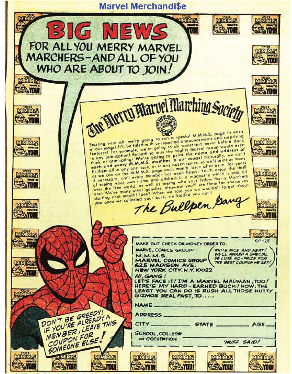 Created by editor Stan Lee and publisher Martin Goodman in 1964, the MMMS was a fan club for Marvel comics, basically.