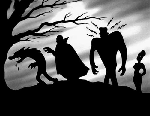 The brief animated sequence not only establishes Abbott and Costello – through their skeletons – as scaredy cats but also establishes the creatures.