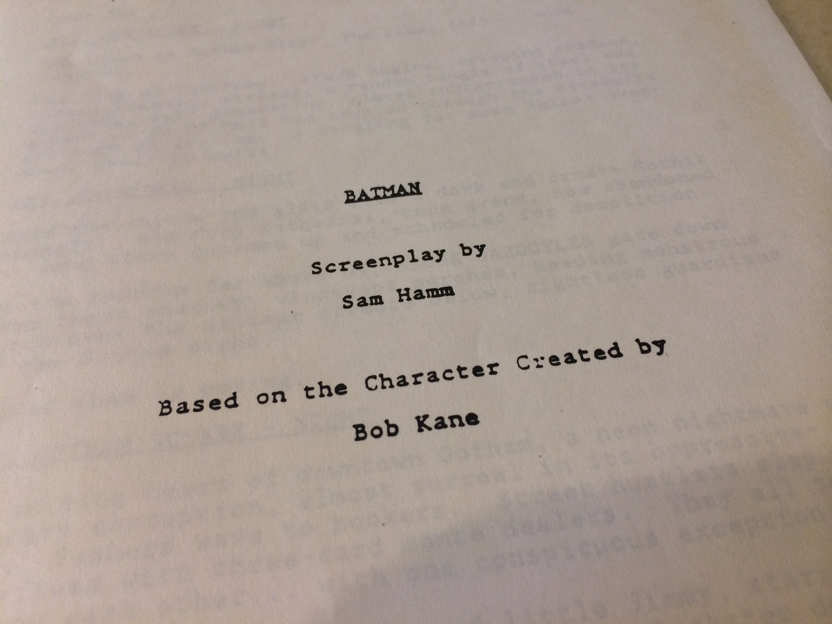 But at some point during all the anticipation and the aftermath, I came across a copy of a Batman script, written by Sam Hamm and noted, “Third Draft, February 29, 1988.” And yes, there was a February 29 that year.