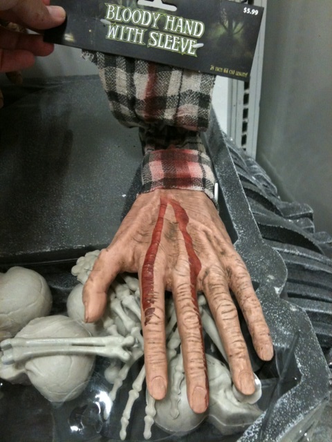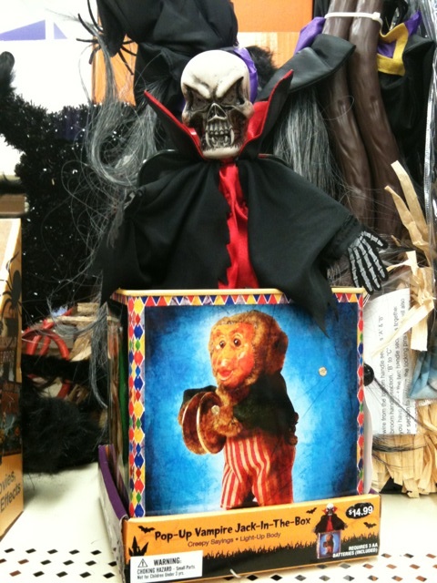 If you remember from last year, I snap iPhone pics of fun, cool and unappetizing Halloween costumes, masks and decor. Considering that I saw my first Halloween stuff in the stores in July this year, I think I’ve demonstrated remarkable restraint in waiting until September.